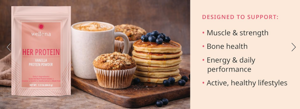 Wellena has a new product with the addition of creatine, so you don’t have to take creatine plus protein, and inositol. FORMULATED BY HORMONE NUTRITIONIST MAGDALENA WSZELAKI – Created by a certified nutritionist, herbalist, and author who recognized that most protein powders are designed for male physiology. Magdalena developed this formula to give women a clean, complete protein that supports muscle nourishment, steady energy, and metabolic balance in midlife. Rooted in a food-as-medicine approach, it offers a thoughtful option for women seeking beef protein supplements as part of a whole-body wellness routine.