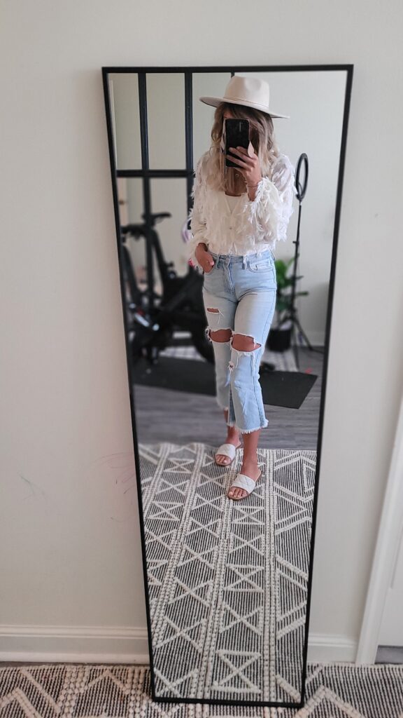 I actually got my favorite pair of flare ripped jeans from TJ Maxx years ago, and I can’t for the life of me figure out where to get more! I found these on Amazon just like them though, and just like the photo!